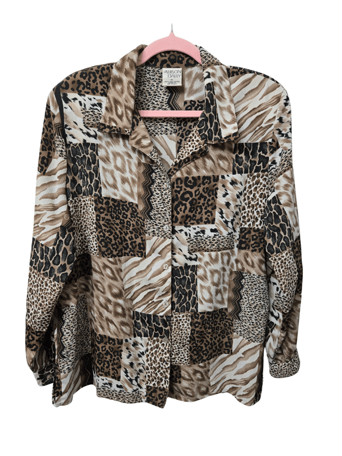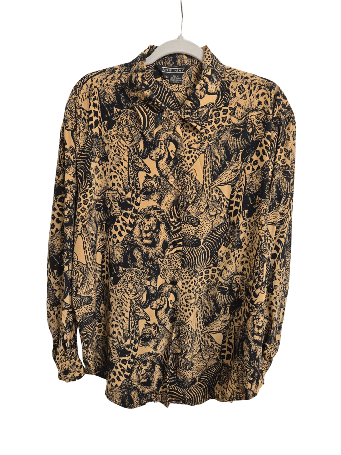Animal Print Silk Size L Button-Up Shirt$38.00