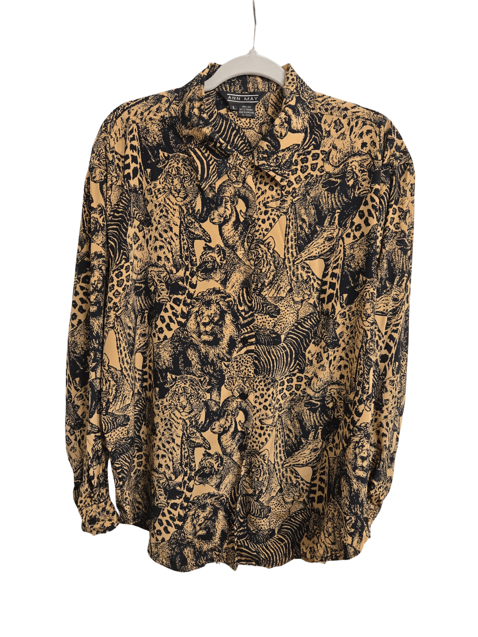 Animal Print Silk Size L Button-Up Shirt