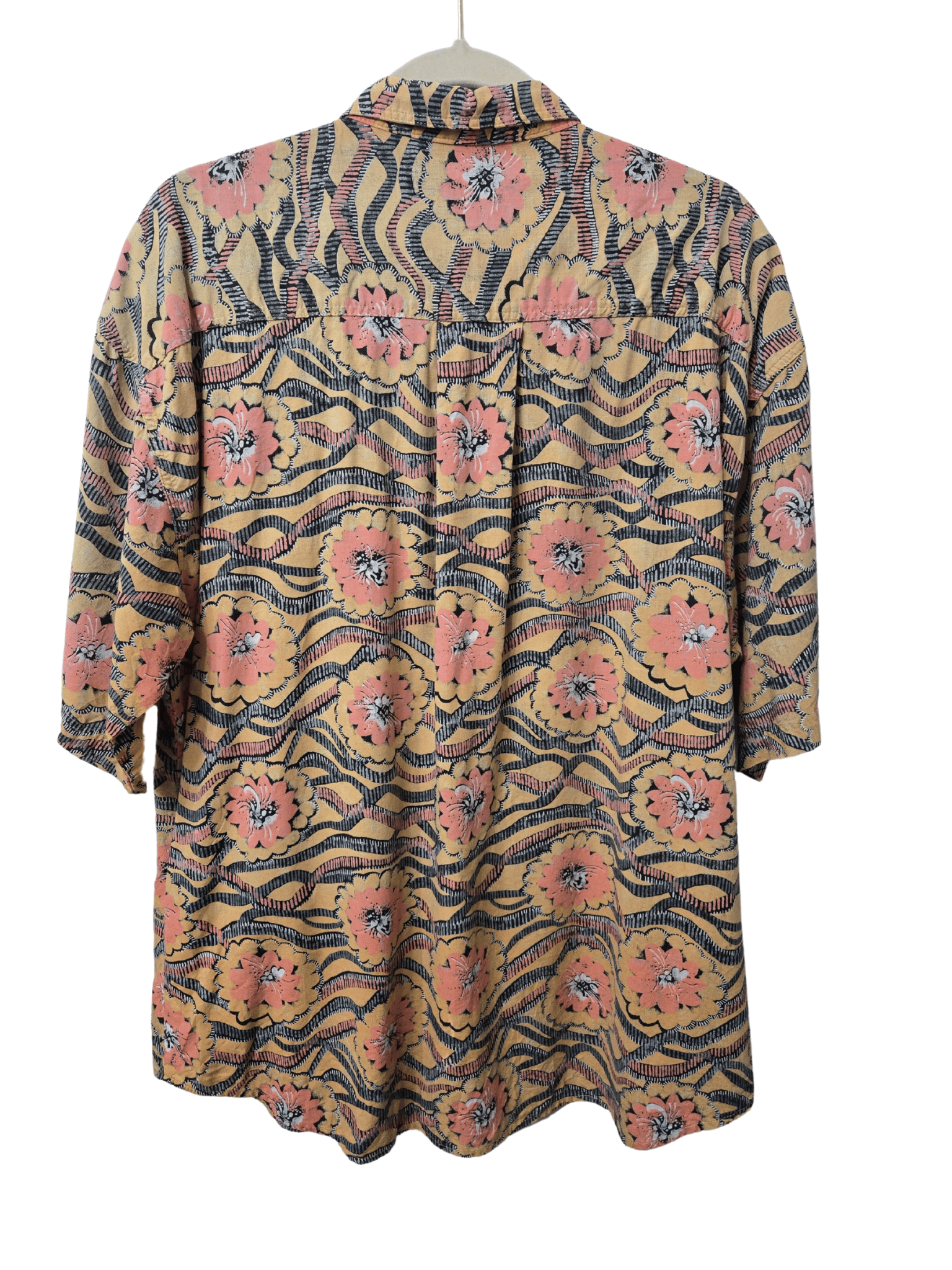 - Peach/Blue/White/Pink flower print; 7 buttons (1st one is shown & rest are hidden); 1 front pocket