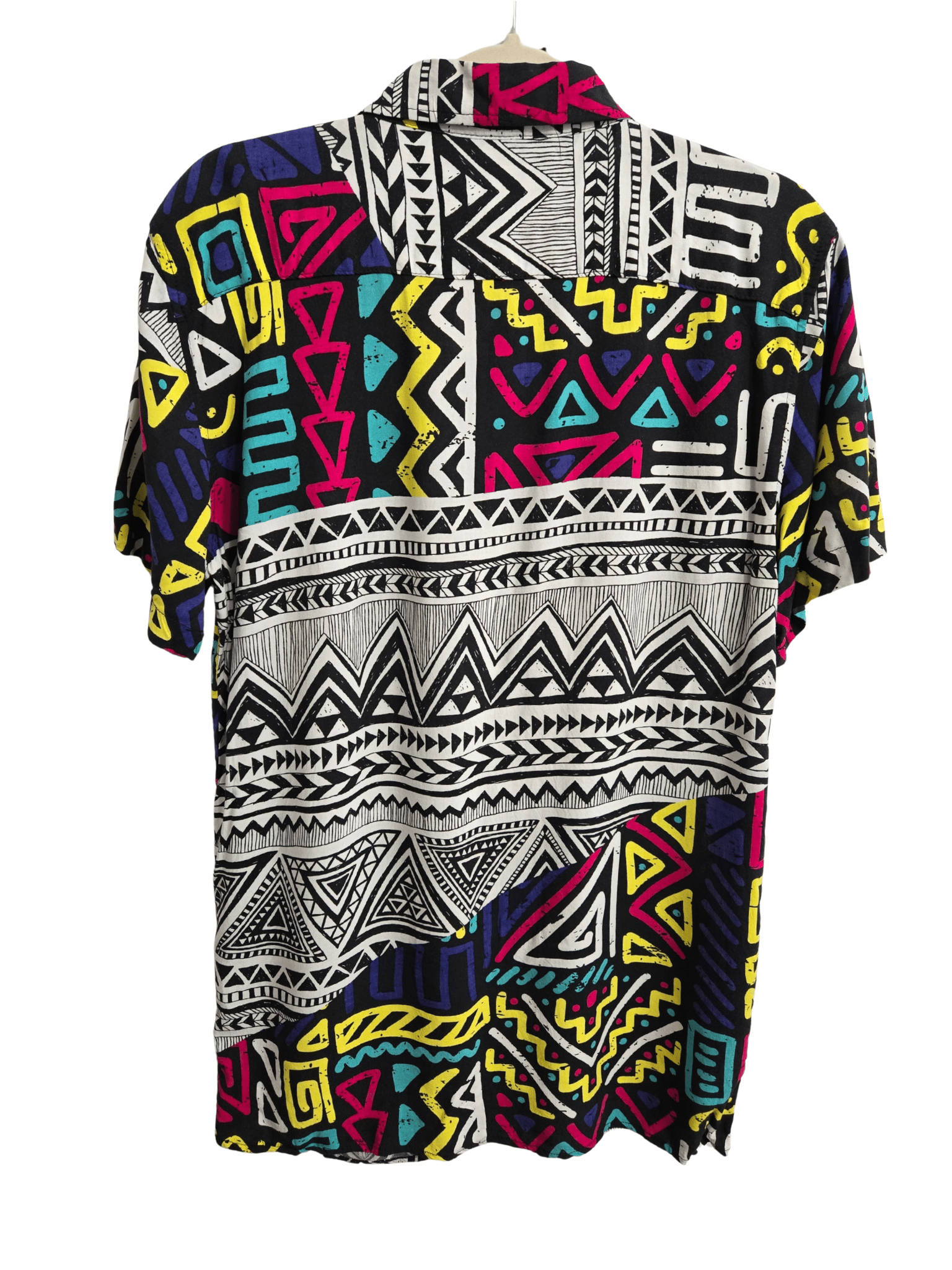 - Black/White/Pink/Yellow/Blue/Teal colors & print; 7 buttons; 1 front pocket